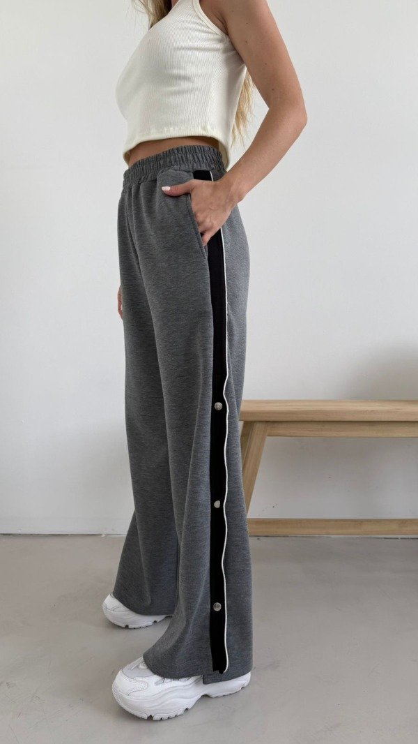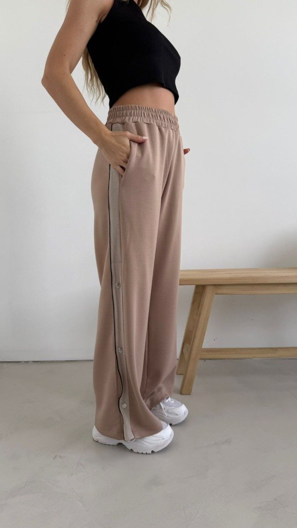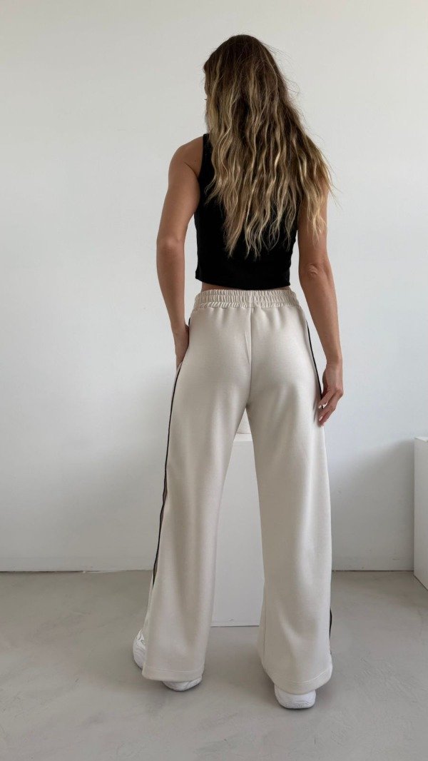 Pantalón palazo tira lateral combinada, broches en lateral, vivos combinados, cintura elástica Tela: scuba soft light